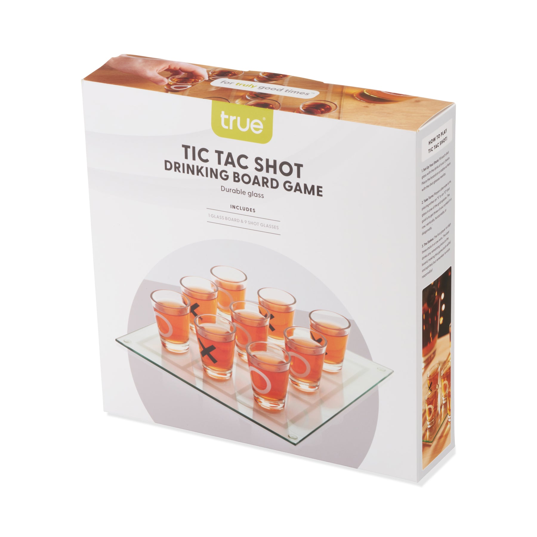 Add a fun twist to a party with this drinking tic tac toe game. With a glass tic tac toe board and shot glasses labeled X or O, this game is just waiting for your favorite booze to liven things up.