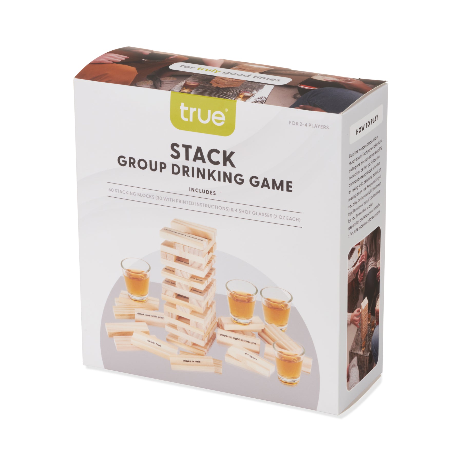 Build the party and break it down again with this adult twist on the classic block stacking group game. Each block is stamped with written instructions so you never have to question the rules after a few rounds. With four shot glasses included, our Stack Drinking Game will have everything you need to get the party started.