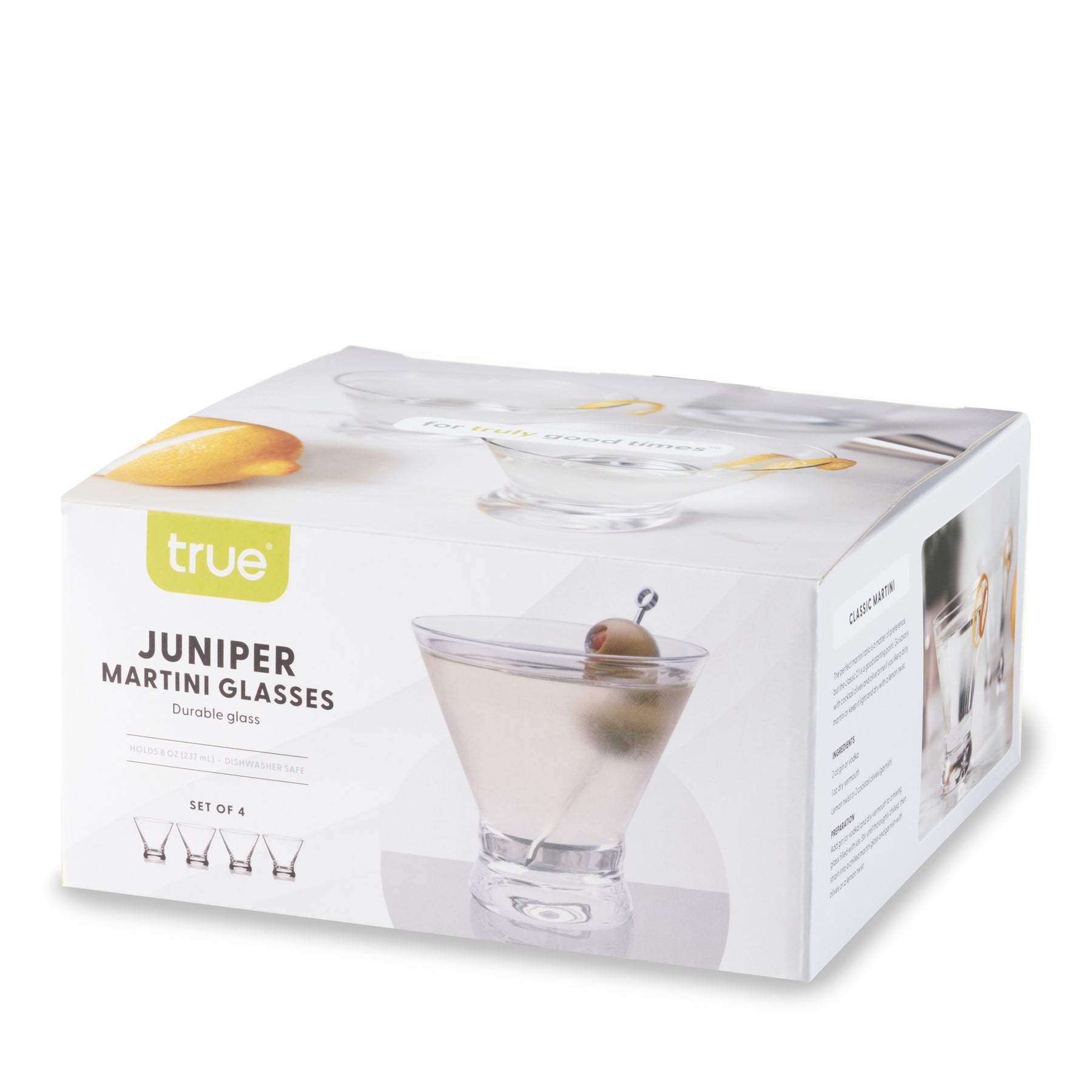 Sleek, modern, and easy to enjoy, this set of stemless martini glasses puts a contemporary spin on the classic cocktail glass. The unique silhouette provides stability without sacrificing style, while the 8 oz capacity makes them ideal for everything from Martinis to Manhattans. Crafted from durable glass and dishwasher safe, they’re perfect for entertaining or everyday use.