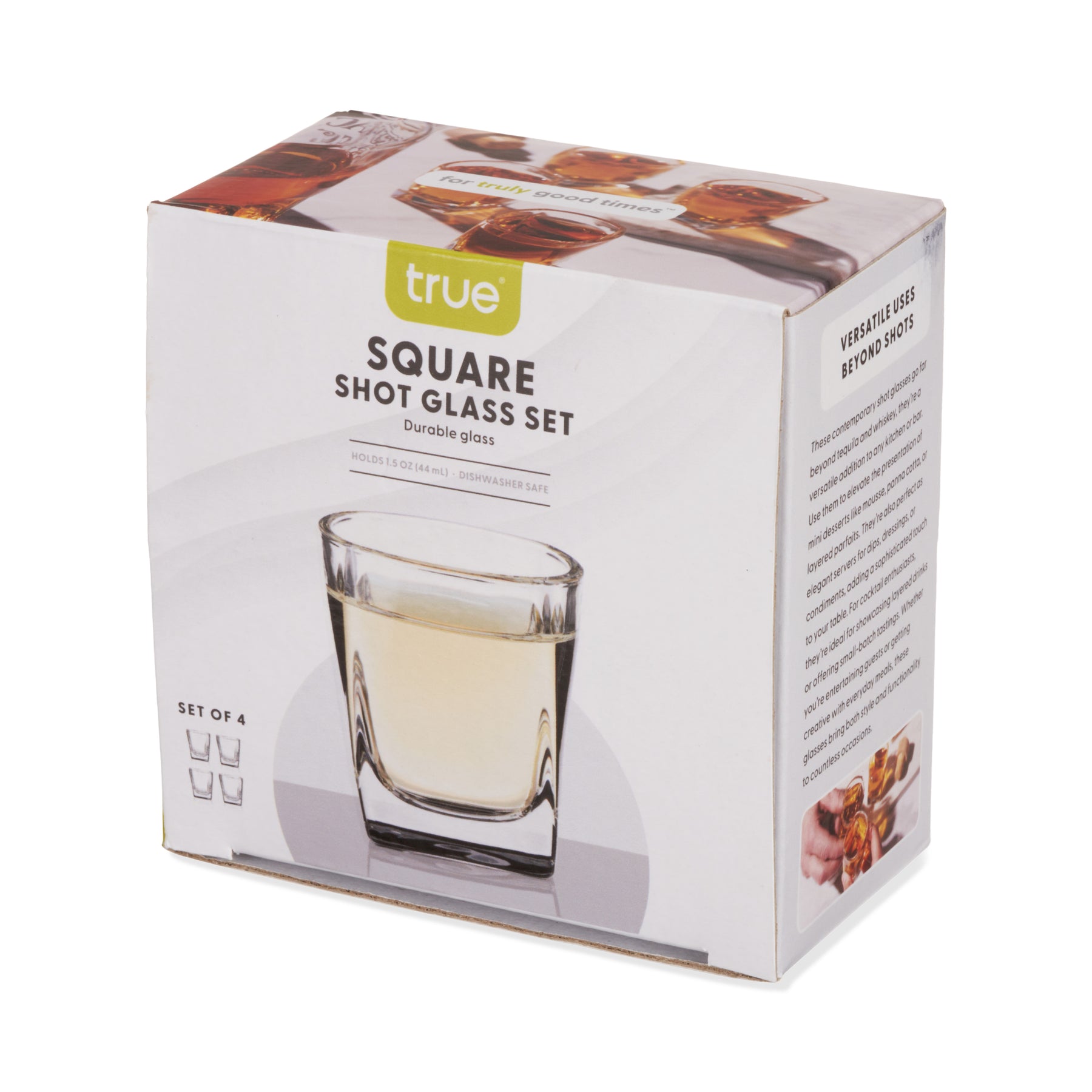 Add a touch of contemporary style to your home bar with these square shot glasses. This set of 4 sleek, durable glasses is perfect for serving tequila, whiskey, or layered shots, and their unique square base brings a modern twist to any occasion. Dishwasher safe for easy cleaning, these versatile shot glasses are ideal for both parties and everyday use.